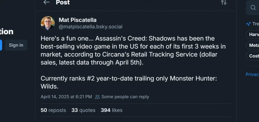 Assassinʼs Creed Shadows захватила чарты США, но уступила одной игре