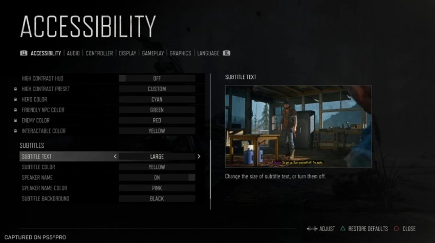 Одна из главных новинок в сфере доступности — режим высокой контрастности. Он станет идеальным дополнением к высокой контрастности интерфейса и имеет как предустановленные варианты, так и возможность широкой настройки. В этом режиме игроки смогут цветом выделять главного героя, дружественных NPC, врагов и интерактивные объекты.