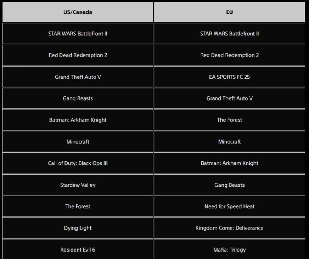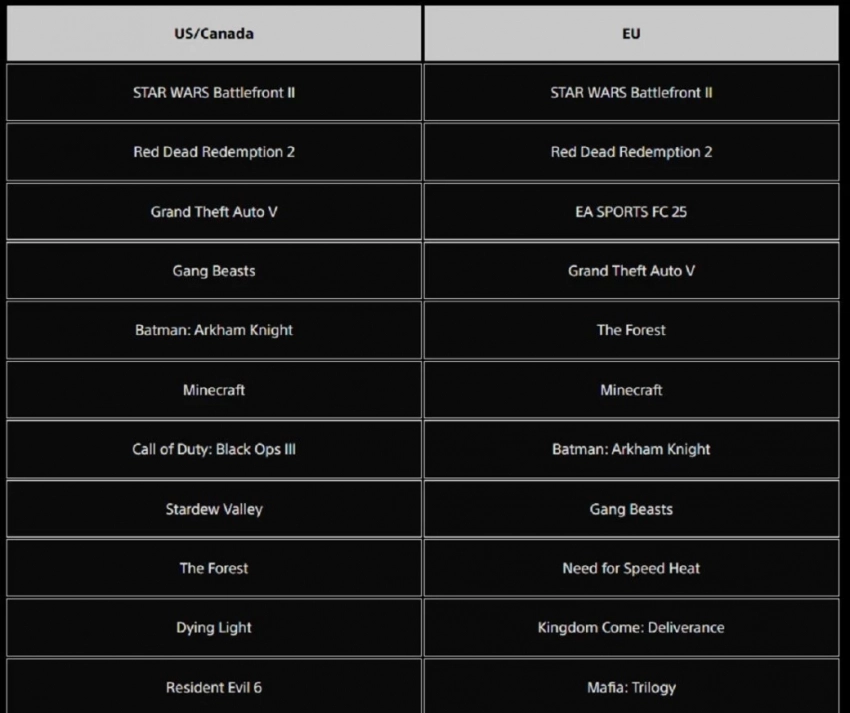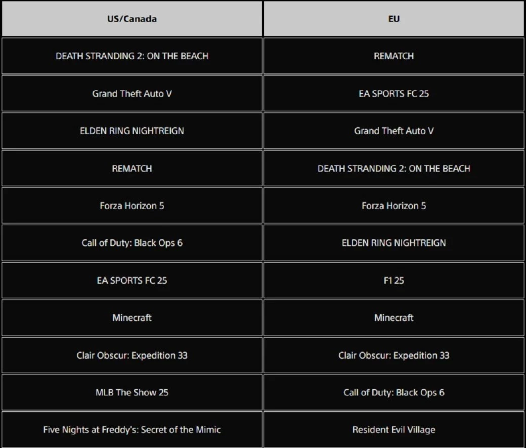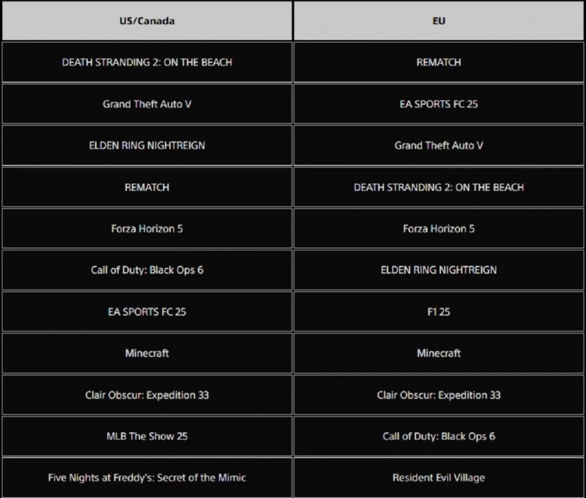 В США и Канаде же Rematch расположилась лишь на четвёртой строчке, уступив Elden Ring Nightreign и GTA 5. Зато по всех описываемых регионах пятое место занимает гоночная Forza Horizon 5. А Clair Obscur: Expedition 33, к счастью, заняла на 33-ю строчку, а девятую.