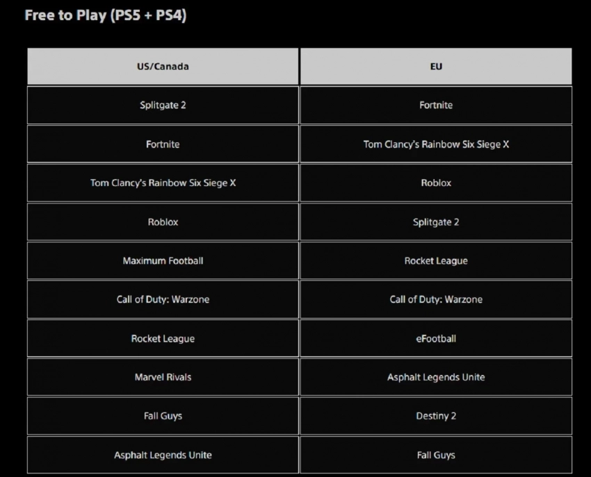 Это неожиданно, но в США и Канаде на первое место по загрузкам условно-бесплатных игр выбился шутер Splitgate 2. Да, он смог одолеть даже Fortnite, которая лидирует в Европе. На третьем места среди игроков США и Канады расположилась обновлённая Tom Clancy’s Rainbow Six Siege, которая сменила модель распространения и заняла вторую строчку по загрузкам в Европе.