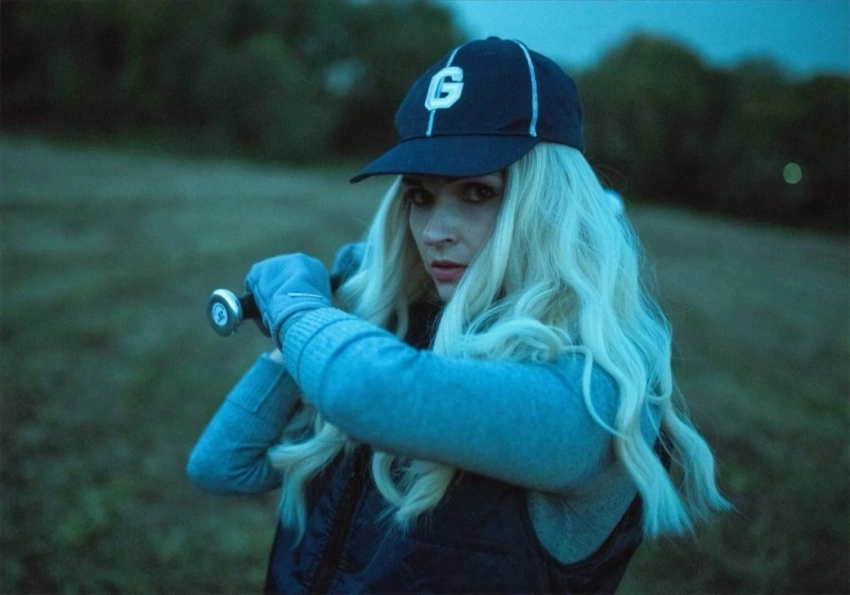 Также она была облачена в бейсбольный кап и бейсбольные перчатки из мягкой кож. Её длинные светлые волосы были убраны в аккуратный хвост. Запечатлела этот образ фотограф Юлия Куликова.