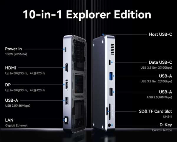 Компьютерная периферия не всегда отличается запоминающемся дизайном, а RGB подсветка во всех компонентах уже набила оскомину. Компания Dockcase решила исправить этот внешний недостаток и поработать над возможностями USB-хаба. Модель Smart USB-C Hub 10-в-1 оснащена экраном с диагональю 1.54″, выводит видео 4K@60Hz, поддерживает сквозную зарядку 100 Вт PD и поддерживает игровые консоли.