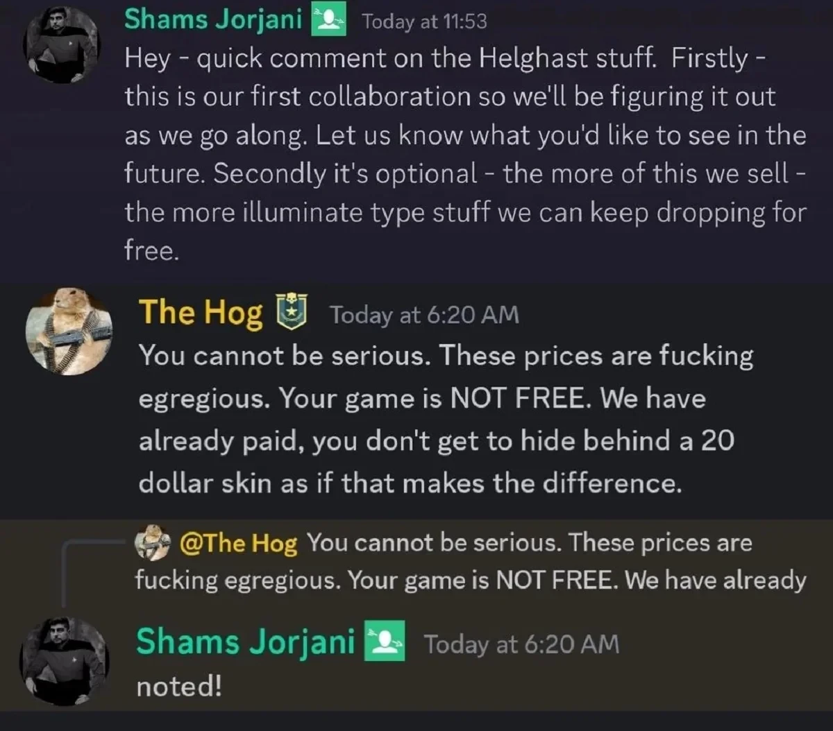 По словам CEO Шамса Джоржани, в Arrowhead прекрасно знали, что стоимость новых предметов вызовет негативную реакцию. Сейчас команда изучает данные о продажах и использовании новинок в игре, а также комментарии сообщества — всё для того, чтобы сформировать будущий подход к подобным релизам.