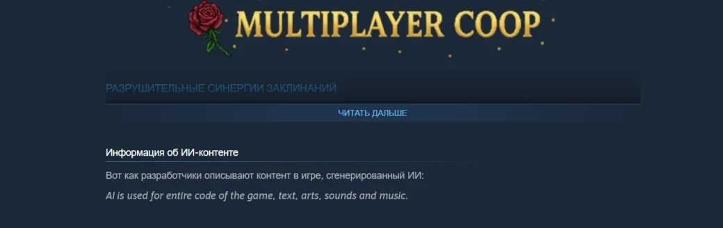 «Грустно наблюдать за новой волной инди-разработчиков, которые просто воруют всё подряд и используют ИИ-слоп. Они ничему не учатся, не хотят работать с настоящими художниками и музыкантами со своими мыслями и чувствами».