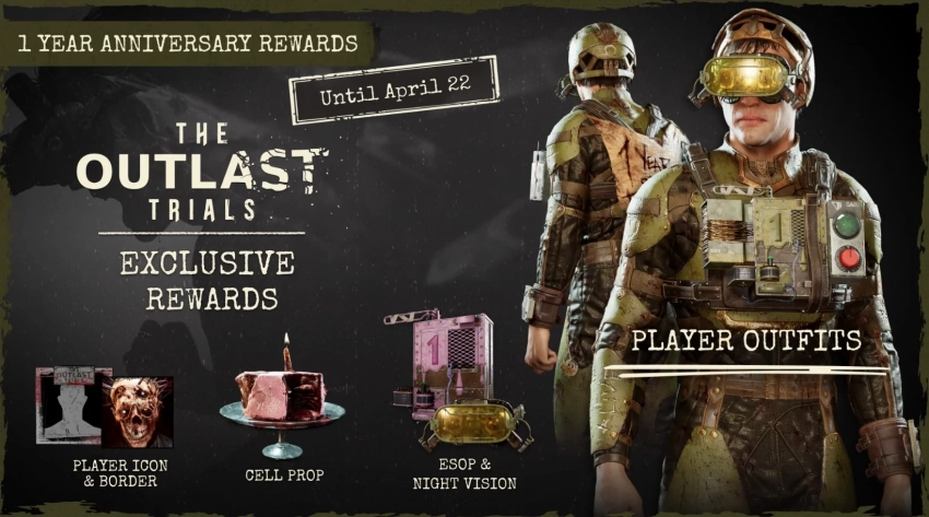 Заодно 25 марта в The Outlast Trials появится ещё два новых испытаниях: Kidnap the Mistress и Stash the Contraband. А вплоть до 22 апреля будет доступен специальный набор заданий. Наградами станут косметические предметы в честь первой годовщины: костюмы, иконки и рамки профиля, украшение для личной комнаты.