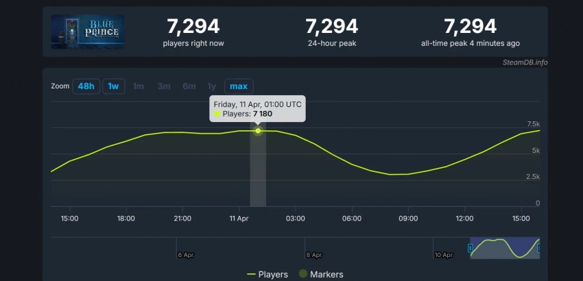Текущие результаты можно назвать впечатляющими — это успех для нишевой игры малоизвестных разработчиков. Чего уж говорить, если даже у переиздания культовой головоломки The Talos Principle, которое также вышло вечером 10 апреля, пик онлайна составил лишь 519 человек.